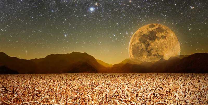 Hoy día 20 de septiembre la luna se vestirá de gala para presidir la fiesta de las cosechas. Última luna del verano que ya se anunciaba ayer con el estruendo del volcán de Cumbre Vieja en la isla de la Palma. La luna más próxima al equinoccio de otoño que ya pintaba modales desde el mar de piscis hasta las predicciones de la cabañuelas. Y se presentará como siempre majestuosa, justo antes de ponerse el sol. Es hora de recoger las cosechas. De acariciar las uvas para trasladarlas al lagar y de extrechar lazos de alegría entre los pueblos. Denominada también como la Luna del Cazador, Luna del Vino, Luna del Alce o Luna Caterina. Asimismo comienza la fiesta de Los Tabernáculos, solemnidad que celebran los judíos en memoria de haber habitado sus antepasados en el desierto antes de entrar en Canaán. La Fiesta de Sucot es también conocida como la fiesta de la alegría.