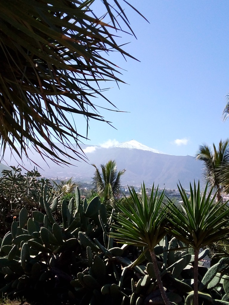 «El espíritu de mi tiempo avanzó y dejó caer enfrente de mí enormes volúmenes que contenían todo mi conocimiento. Sus páginas estaban hechas de mineral» (Carl Jung) Los movimientos del universo dan origen a hechos definidos en la vida de una persona y aunque parezca una paradoja suele ser muy cierto. Estamos influídos por la astrología y cada vez queremos ahondar más y más en ella. Nuestra curiosa necesidad de urgar en su misterio no hace descubrir muchos de los enlaces que tiene con nuestra existencia. Muchos niegan esa similitud pero a la vez se halla atrapados en su misterio. Hoy contemplé este liezo realizado solamente para mí y me sorprendí con él. Todo reunía la simétrica proporción de algo tan natural, atrayente y misterioso como puede ser un volcán, el Teide, silencioso, vestido de blanco sobre el cielo azul. Solamente un detalle se escapó de la creación, su enmarcado. No obstante las piteras, los dragos y las palmeras se sintieron obligadas a rubricar el encuadre perfecto. Cuestión de gusto ¿no es cierto?.